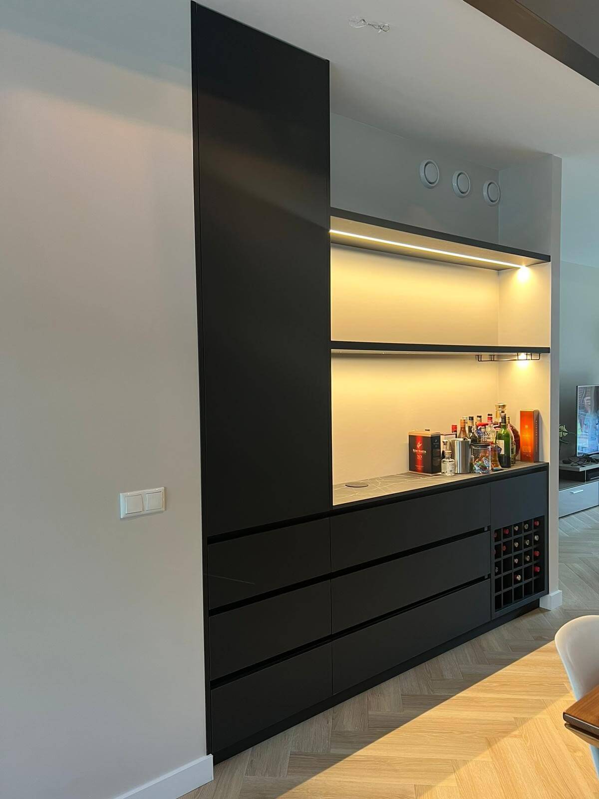 Alles wordt op maat gemaakt. We werken dus niet vanuit standaard maten of indelingen. Om tot het beste resultaat en één geheel te komen, werken wij samen met binnenhuisadviseurs. Een custom-made keuken als echte eyecatcher in uw huis, inbouwkasten of inloopkasten; wij realiseren de wens van de klant met volledig maatwerk.