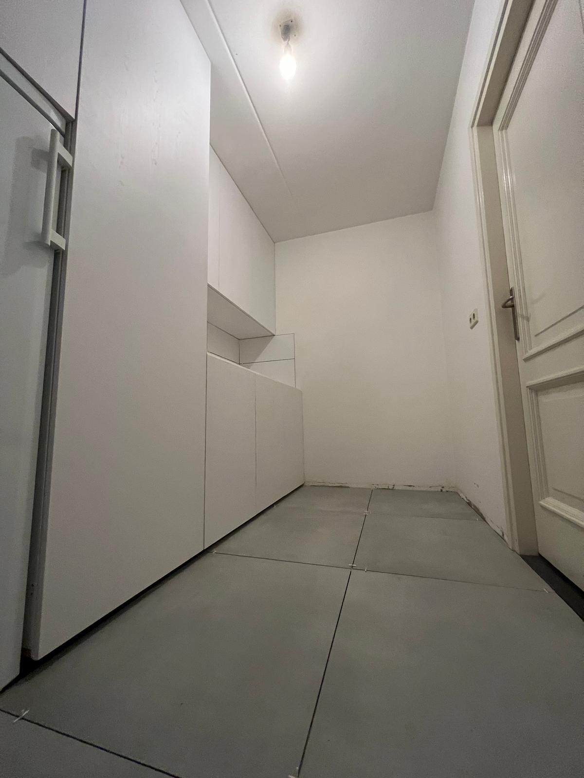 Project bijkeuken met ingebouwde wasmachine en droger. Een bijkeuken is super makkelijk voor je voorraad en wasruimte tegelijk. Voor deze klant hebben wij een keukenblok met een kast voor de droger en wasmachine gemaakt en geplaatst. En bijpassende tegelvloer gelijmd afgewerkt met mdf plinten. Binnen een week volledig onherkenbare ruimte.