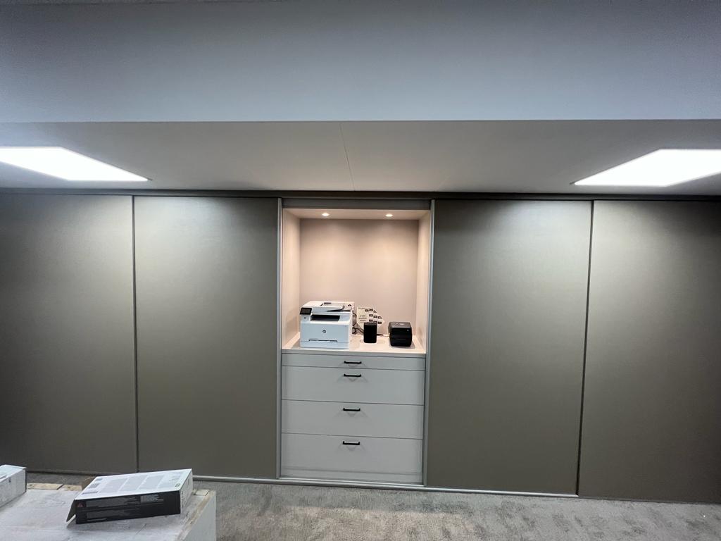 Soort: Interieurbouw Vakkenkast Textiel look In deze kantine/vergaderruimte van Berg & Berg hebben wij een vakkenkast geplaatst met ingebouwde tv … Bekijk project